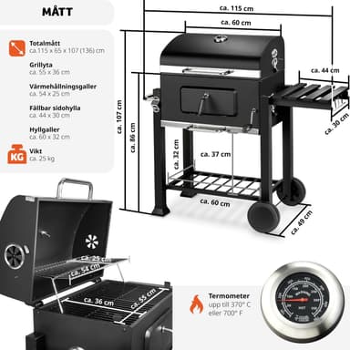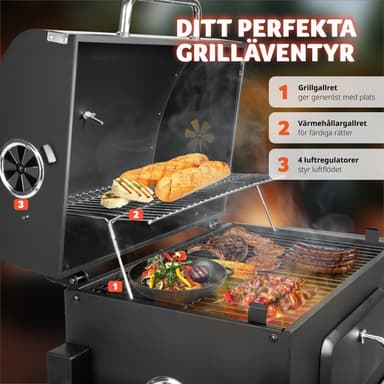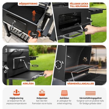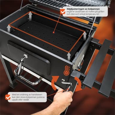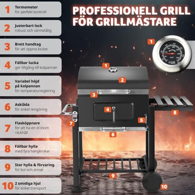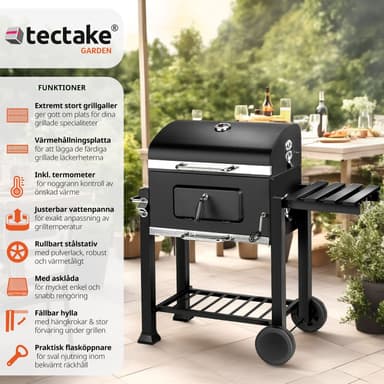 Vill du starta grillsäsongen med en raffinerad träkolsgrill? Tectakes professionella träkolsgrill Felix är en äkta sensation med många smarta extrafunktioner. Grillens nedfällbara sidobordet fungerar inte bara som förvaringsyta för dina ingredienser, det har också praktiska krokar på sidan så att du alltid har grilltången nära till hands. Tack vare termometern behöver du aldrig mer missa den perfekta tillagningsgraden. Träkolsgrillen har dessutom en extremt stor värmeyta. Grilltemperaturen kan justeras, eftersom höjden på den stora träkolsbaljan kan justeras med hjälp av en vev. Under träkolsbaljan finns en asklåda som gör rengöringen väldigt enkel. Klicka hem din nya kolgrill redan idag från Tectake.