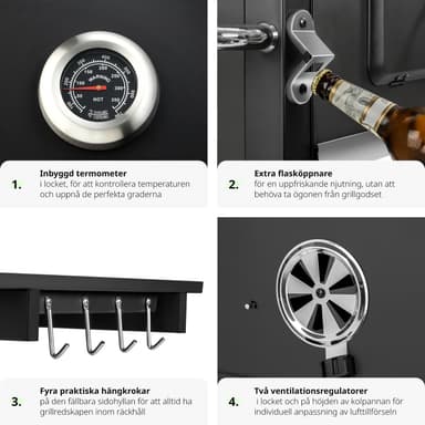 Vänligen observera att det inte går att använda bensin- eller alkoholbaserade tändvätskor på denna grill. Vi rekommenderar istället att man använder en bras- eller ulltändare.