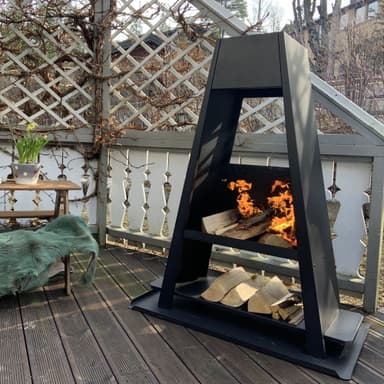 Tack vare det medföljande grillgallret kan du använda utespisen Siv som en läcker grill. Underdelen har ett praktiskt utrymme till förvaring av ved.