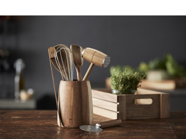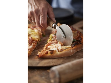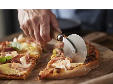 Enkel och funktionell pizzaskärare med hjul i rostfritt stål och ett praktiskt långt handtag av vackert akaciaträ. Modellen ligger bra i handen och skär enkelt och snabbt pizzan i lagom stora bitar.Läs mer om produkten