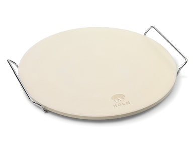 Använd pizzasten och få perfekta pizzabottnar. Pizzastenen har en diameter på 33 cm och kan användas i en vanlig ugn och på grillen. En smart, förkromad hållare som kan användas för servering medföljer.Läs mer om produkten