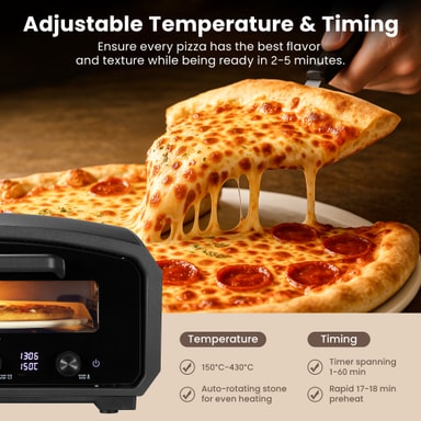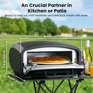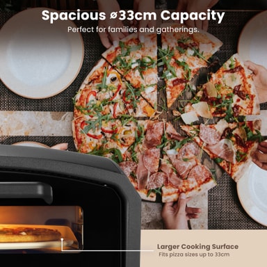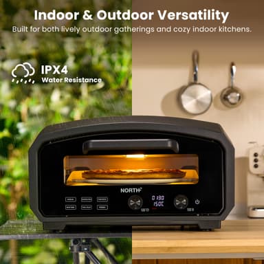 Gör läcker pizza med 2100-watt North pizzaugn 205006. Den har en 33 cm roterande platta för jämn värmefördelning och en justerbar termostat med ett intervall på 150-430°C, perfekt för matlagning både inomhus och utomhus.Läs mer om produkten
