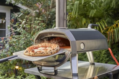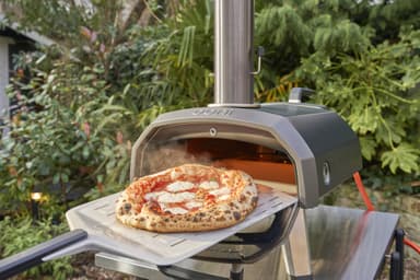 Ooni Karu 2 pizzaugn UU-P30300 värms upp till 500°C med en ClearView glaslucka som håller värmen inne och förhindrar sotbildning. Laga mat med ved, kol eller gasbrännare (säljs separat). Den 15 mm tjocka cordieritestenen bakar perfekta 30 cm pizzor.Läs mer om produkten