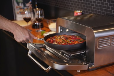 Baka äkta pizza med Sage Pizzaiolo pizzaugn SPZ820. Denna enkla bänkugn är tillräckligt kraftfull för att nå extremt höga temperaturer vilket hjälper dig att baka pizzor i toppklass.Läs mer om produkten