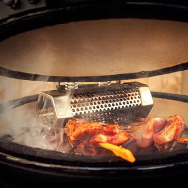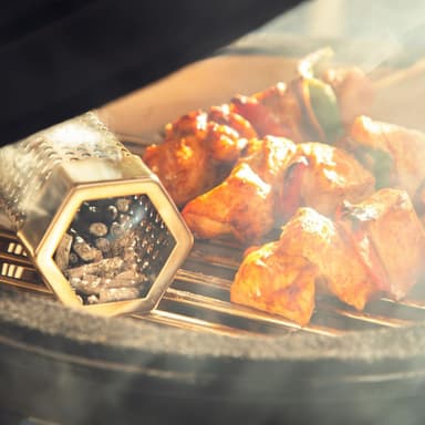 Prova våra VONROC-träpellets i tre fantastiska smaker: apelsin, kaffe och tropisk frukt (BQ803AA) på vår VONROC Kamado 13-tums grill (BQ501XX).