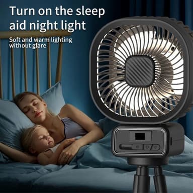 Lång batteritid för långvarig användning: Designad med ett 5000mAh-batteri, denna fläkt erbjuder förlängda driftstider, vilket säkerställer en sval bris och komfort under långa utflykter eller övernattningsturer
