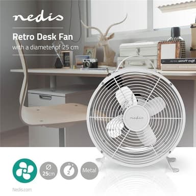 Bordsfläkt i retromodell | Diameter 25 cm | 2 hastigheter | Vit