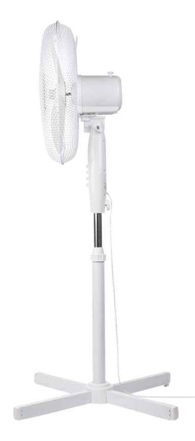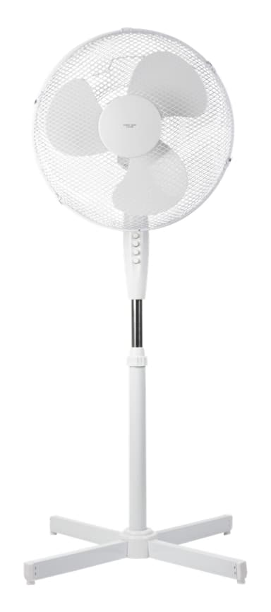 En golvfläkt från NHC med ett stort 16 tums fläktblad, drivet av en energieffektiv 50W motor utformad för prestanda och tystnad. Justerbar höjd mellan 102 och 120 cm. Den nätmönstrade grillen och de fyra benen håller fläkten skyddad och stabil. Sprid kall luft runt hela rummet med fläktens oscillerande funktion genom att dra vredet på baksidan uppåt.