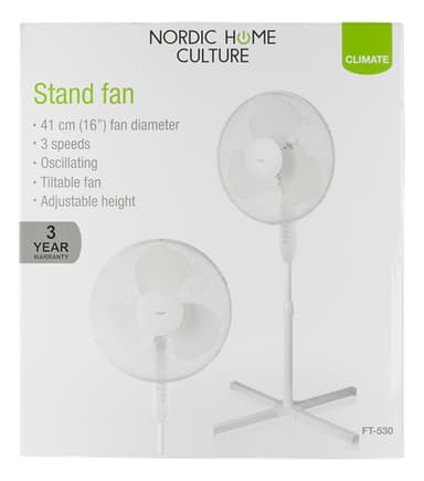 NORDIC HOME CULTURE Golvfläkt, 410mm, tre hastighetsinställningar, 50W, lutbar, vit