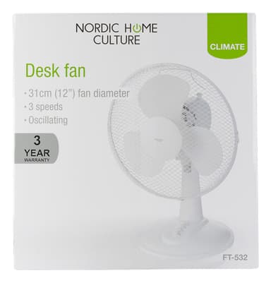 NORDIC HOME CULTURE Skrivbordsfläkt, 310mm, tre hastighetsinställningar, 40W, lutbar, vit