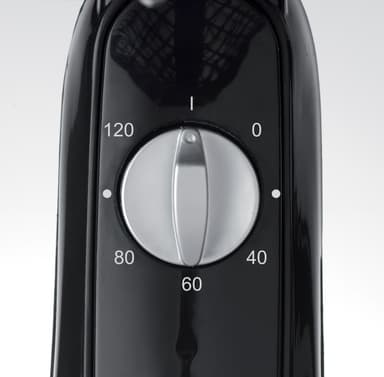 Golvstående fläkt med rund bas, kännetecknad av moderna och eleganta linjer som gör den lämplig för alla miljöer.