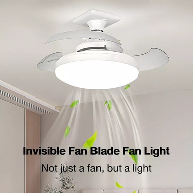 Fjärrkontroll / APP-kontroll E27 Base 3 hastigheter gömt blad fläktljus 48W Dimbar hushållstaklampa【Mångsidig 3-i-1-design】 Denna innovativa E27 takfläktlampa med skruvbas kombinerar en kraftfull fläkt, justerbar LED-belysning och en elegant design,Läs mer om produkten