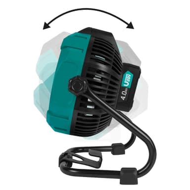 Svalka dig var du än är! VONROC 20V batteridriven fläkt med hybridfunktion ger dig flexibel användning – kör den på batteri eller direkt via nätström. Med 3 hastigheter, 360° justerbart luftflöde och upp till 7 timmars drifttid med 4.0Ah batteri får du en pålitlig fläkt för både inne- och utomhusbruk.