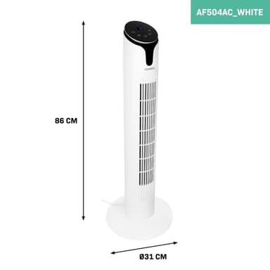 Pelarfläkt vit (AF504AC_WHITE) levereras i en låda utan färgtryck.