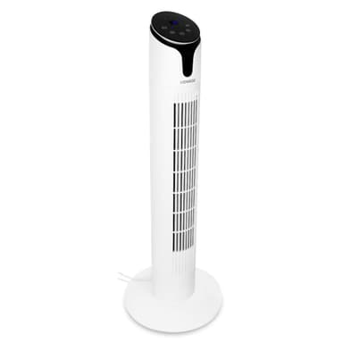 Denna snygga pelarfläkt kommer bli ett coolt och elefant blickfång i ditt hem. Den modernt utformade kontrollpanelen är utrustad med en LED-display och bekväma touchknappar. Det finns tre hastighetsinställningar (mjuk, medium, hård) och en timer på 15 timmar. Roterationsfunktionen ger en gradvis fördelning av sval luft. Fläkten levereras komplett med fjärrkontroll så att du kan styra inställningarna var du än befinner dig.