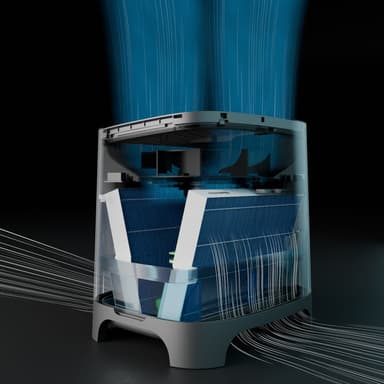 • Avancerad design med dubbla luftkanaler.;Tre lägen: Smart, Turbo, Natt.;Silvertex® vattensteriliseringsdyna.;Låg ljudnivå på 24 dB.;Lämplig för rum upp till 44 m².