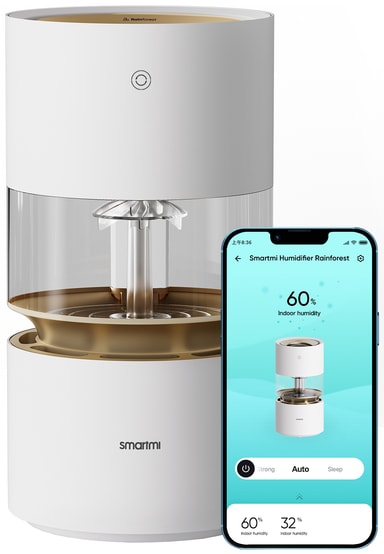 Njut av atmosfären av en långsam regnig dag i skogen, samt ren luft i ditt rum upp till 20 m2 i storlek tack vare Smartmi Rainforest luftfuktare SM1019 och dess flerskiktsfiltrering, 200 ml/h kapacitet, enkla kontroller och unika lugnande design.Läs mer om produkten