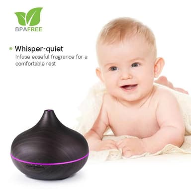 Den perfekta detaljen till hemmet eller kontoret: En luftfuktare i stilren, trämönstrad design, perfekt för aromaterapi och avkoppling i Zen-anda.