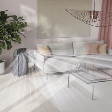 • Simulera en frisk bris med oscillerande luftgaller och justerbar fläkt