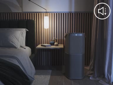 Med en lägsta ljudnivå på bara 17,3 dB(A)5 går din Pure 600 så tyst att du kan sova fridfullt medan den rengör luften. Även vid högsta fläkthastighet når ljudnivån bara 52,8 dB(A)5 – tystare än en normal konversation vid middagsbordet.