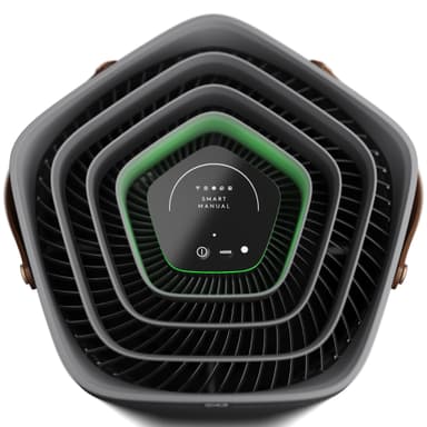 Design Den kompakta, cylindriska luftrenaren har ett bekvämt handtag för enkel portabilitet. Den har en toppskärm för enkel kontroll.