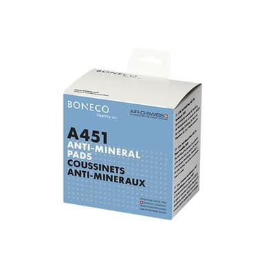 Kuddar utvecklade speciellt för BONECO ångfuktare. Det minskar förkalkningen av förångarbassängen och minskar behovet av nödvändig avkalkning. Beroende på vattnets hårdhet måste kudden bytas ut var 2-4 veckor.