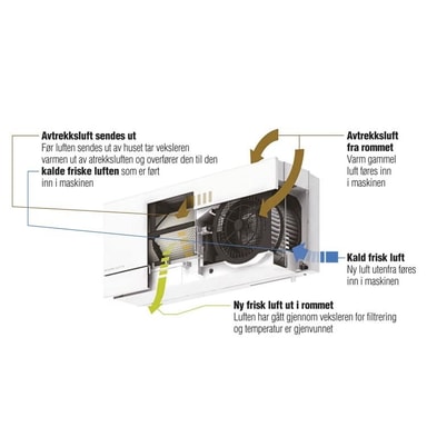 Cirkulerar frisk luft in och använd luft ut – Säkerställer ett kontinuerligt och hälsosamt inomhusklimat.