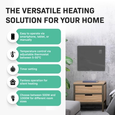 Den här värmaren är inte bara snygg utan den är även fullt utrustad med modern teknik. Med den kostnadsfria "Tuya Smart Life – appen" kan du justera alla inställningar du vill, vart du vill. Ställ in önskad temperatur med din smartphone eller surfplatta eller ställ in timern exakt som du vill.