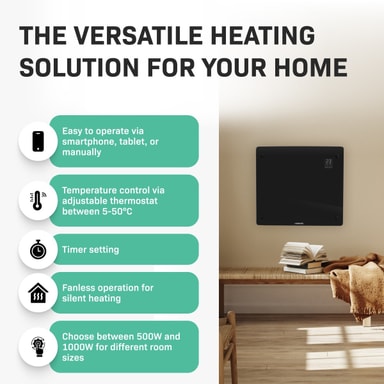 Den här värmaren är inte bara snygg utan den är även fullt utrustad med modern teknik. Med den kostnadsfria "Tuya Smart Life – appen" kan du justera alla inställningar du vill, vart du vill. Ställ in önskad temperatur med din smartphone eller surfplatta eller ställ in timern exakt som du vill.