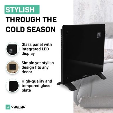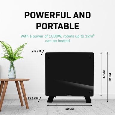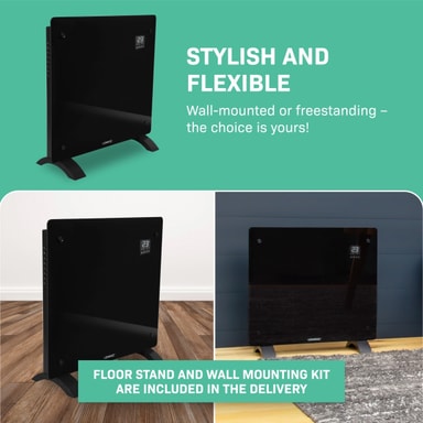 Effekten på 1000W ger tillräckligt med kraft för att värma utrymmen på upp till 12 m2 . De praktiska måtten (52 x 47 cm) gör den här enheten lätt att flytta så du kan värma upp vilket önskat rum som helst på nolltid. Det är perfekt när du arbetar hemifrån och inte vill ha centralvärme igång hela dagen. Vill du hellre montera elementet på väggen? Inga problem. Vi skickar med ett golvstativ samt en monteringssats. Vi lämnar valet upp till dig!