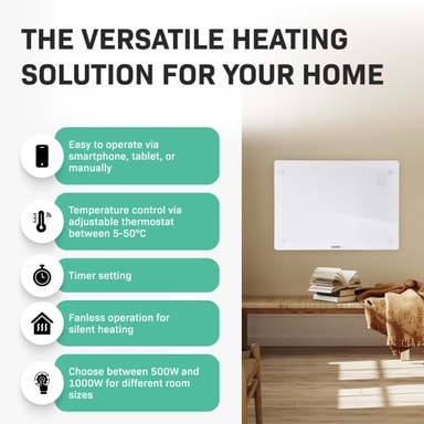 Den här värmaren är inte bara snygg utan den är även fullt utrustad med modern teknik. Med den kostnadsfria "Tuya Smart Life – appen" kan du justera alla inställningar du vill, vart du vill. Ställ in önskad temperatur med din smartphone eller surfplatta eller ställ in timern exakt som du vill.