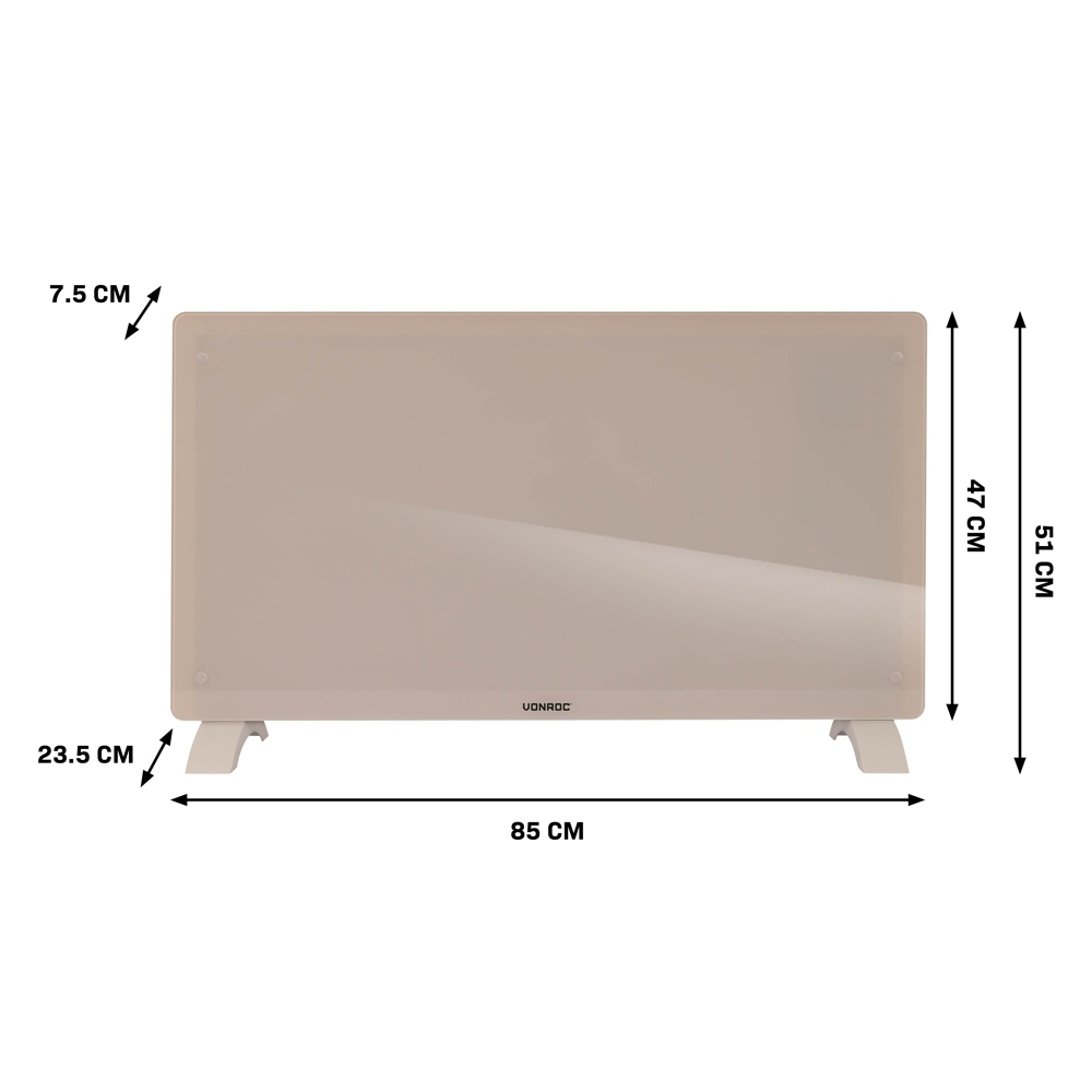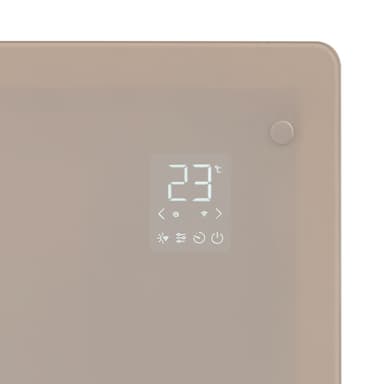 Den här elvärmaren är lika snygg som den är effektiv – den härdade beige glaspanelen med integrerad LED-display ger ett elegant och modernt utseende som smälter in i alla hem. Den varma, neutrala tonen gör den enkel att kombinera med olika inredningsstilar.