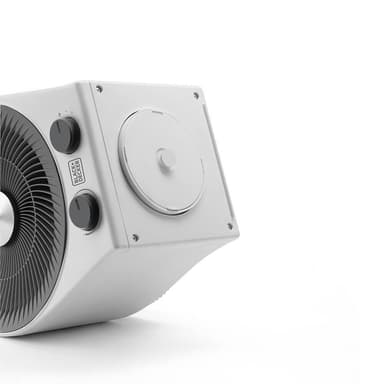 En säkerhetsbrytare stänger av värmaren om den skulle välta. Oscillationssystem säkerställer en vid vinkel på luftflödet.
