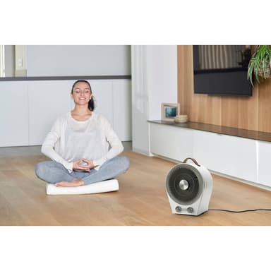 2 värmeinställningar (1000W-2000W) och justerbar termostat för maximal komfort. 2 starka fläktlägen för att cirkulera luft och fräscha upp rummet. Säkerhetsfunktion med automatisk avstängning vid överhettning. Inbyggt handtag säkerställer enkel portabilitet. Lämplig för rum upp till 20 m².