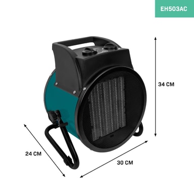 Inga fler frusna fingertoppar… den här kraftfulla keramiska värmefläkten från VONROC tar hand om det! Den här enheten använder trefas 400V ström och det är av goda skäl! Med en effekt på 5000W ser denna värmekanon till att din verkstad, lager eller garage är varmt på nolltid. Det keramiska elementet värms upp mycket snabbt och den kraftfulla fläkten driver upp till 588m 3 varmluft per timme!