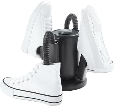 135W Apt Shoe Dryer 74405 torkar effektivt upp till två par skor samtidigt. Den har en roterande strömbrytare på ovansidan med timerinställningar, UVA-sterilisering och avger varmluft på 50°C. Den är även utrustad med justerbara dubbla slangar.Läs mer om produkten