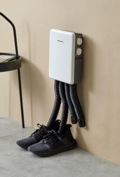 Håll dina skor torra tack vare väggmonterade Nordic Sense skotork 10687 som erbjuder en justerbar termostat, 2-timmars timer, sidokontrollpanel, fyra slangar och 350 W effekt.Läs mer om produkten