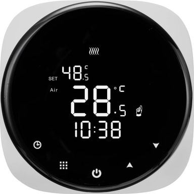 • Digital rumstermostat med touchpanelInbyggd och extern sensorSemesterlägeVeckoprogrammering