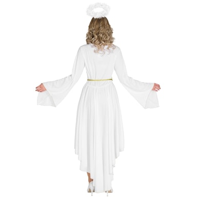 Julkostym Sexig Ängel består av en underbar klänning, kort framtill och längre baktill. Klänningen har en gyllene fåll i V-ringningen och sexiga veck vid bysten. Medföljer också: ett gloria-diadem och gyllene knytskärp, material: 100 % polyester.