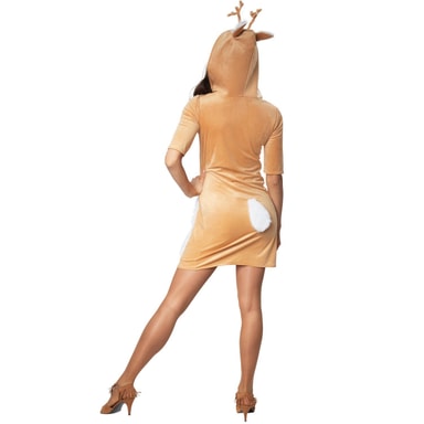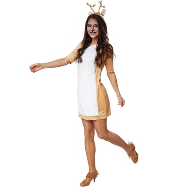 Skygg? Inte alls: Det kvicka rådjuret smyger modigt runt i maskeradvimlet. Den fluffiga dräkten har ett kort snitt och framhäver dina ben. Som flockdjur håller det stolta djuret utkik efter sina artfränder. Det kvicka rådjuret håller sig bara undan från alltför påträngande jägare – de får nöja sig med att beundra baksidan med den söta lilla plyschsvansen.