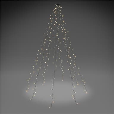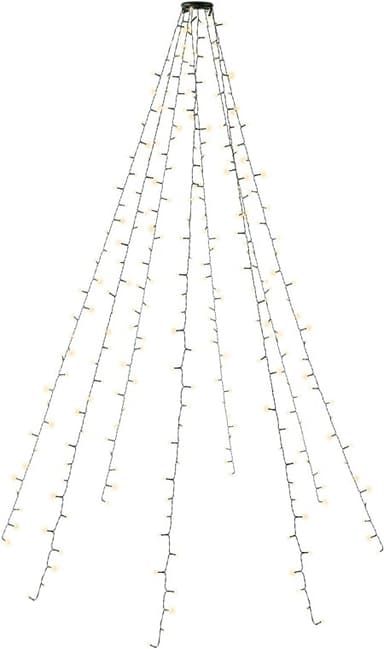 med timer och minnesfunktion, 8 ljuslägen, 24 V extern transformator, varmvitt (3000 K), för inomhus- och utomhusbruk (IP44)Förpackning: Retail BoxLjuskedjan med ring är lämplig som belysning för en julgran på 1,60-2,40 m.Lämplig som stämningsbelysniLäs mer om produkten