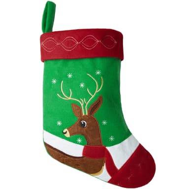 Om och hur mycket julstrumpan med renmotiv fylls beror på jultomten själv. Det kan dock aldrig skada att ha en julstrumpa som är ett snyggt blickfång. Detta sammetslena exemplar pryds av en söt ren och snöflingor på en grön bakgrund, medan de övre och nedre ändarna är röda och dekorerade med vackra broderier. Den stora öglan på skaftet gör det enkelt och säkert att hänga upp julstrumpan var som helst som en fin juldekoration. Med sitt stora utrymme är den perfekt för frukt, godis och julklappar, något som tomten uppskattar mycket. Material: 100 % polyester.