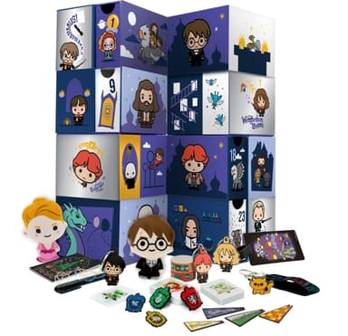 Den här stora och unika julkalendern med Harry Potter innehåller 24 magiska överraskningar från den fängslande trollkarlsvärlden. Julkalendern är byggd som ett torn i fyra våningar och luckorna öppnas som utdragbara lådor. När du tar tag i tornet och vrider på delarna hittar du de dolda luckorna - magiskt, eller hur? Bland överraskningarna finns blyertspenna, suddgummi, tejp, nyckelringar, mjukisdjur, magneter och mycket mer. 3+