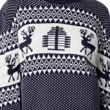 Namnet på denna tvåfärgade jultröja Vinterlandskap säger allt. Det centrala motivet är mötet mellan två rådjur på ett träd i ett snöigt landskap, inramat av nordiska mönster och många små snöflingor i nedre och övre området. Den runda halsringningen och midjemudden på detta klassiskt designade plagg har en mjuk ribbstickning. Den fina dubbelstickningen ger hög bärkomfort och härlig värme, Material: 100 % akryl.