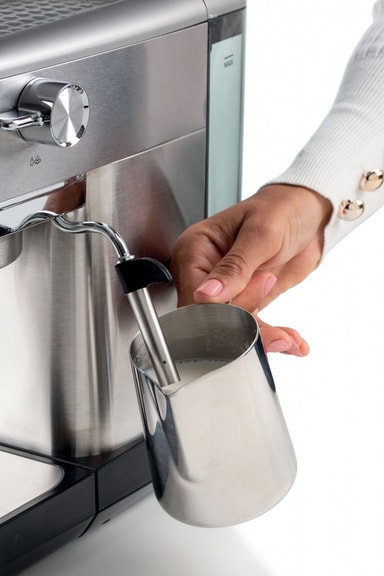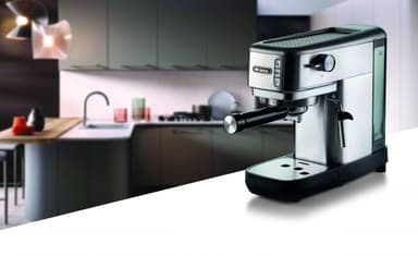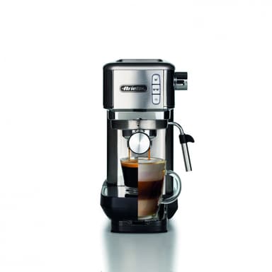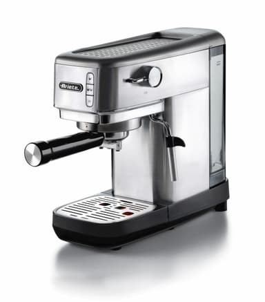Upptäck den oöverträffade njutningen av en tät, krämig espresso med en intensiv och ihållande arom. Solid, dyrbar och kompakt. 15 bars pubtryck för den perfekta bryggningen, professionell filterhållare för kaffepulver och ESE-kaffekapslar, supertunn design, 14 cm brett, utsökt mjölkskum tack vare maxi cappuccino ångstaven, utmatning av hett vatten för te och infusion, inbyggt tryck mätare hjälper dig att konsekvent brygga perfekt espresso, avtagbart vatten tack, 1,1L, justerbar dubbel droppbricka för espressoglas och cappuccinoglas.