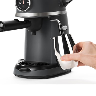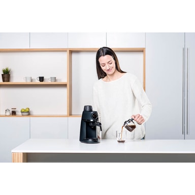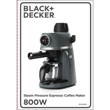 Njut av utsökt kaffe och krämiga cappuccino och cortados med denna kaffemaskin med hydrotryck från Black+Decker tack vare mjölkskummaren. Den har ett lättanvänt ångmunstycke för att skumma mjölk snabbt.