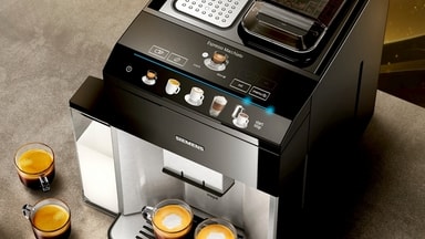 Denna helautomatiska espressomaskin kan också styras med vilken smartenhet som helst eller Amazon Alexa via Home Connect-appen, även när du ligger i sängen. Använd coffeePlaylist när du har gäster, starta bryggprocessen och hoppa över sköljprocessen, aktivera koppvärmaren och få en översikt över dryckeskonsumtionen. EQ500, coffeeWorld och Home Connect låter dig också njuta av smaken av upp till 18 varma drycker och internationella kaffespecialiteter hemma - vare sig det är en American Red Eye, Wiener Melange eller Portuguese Garoto.