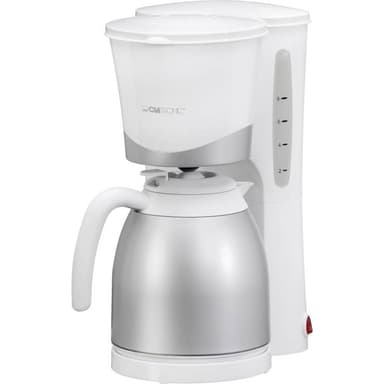 Clatronic KA 3327 Kaffebryggare Vit Kapacitet Koppar=10 Isolerad kannaVattennivåindikator Strömbrytare med kontrollampa Spänningsförsörjning: 220–240 Volt, 50 Hz Effektförbrukning: max. 870 WattFör 8-10 koppar kaffe (ca 1 liter) · Termoskanna, dubblaLäs mer om produkten
