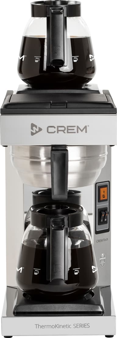 Crem ThermoKinetic M2-2 1.8L kaffebryggare är en kapabel maskin med manuell vattenpåfyllning och värmeplatta. Kaffet bryggs direkt till en 1.8 liters glaskaraff med handtag för enkel severing.Läs mer om produkten