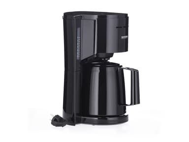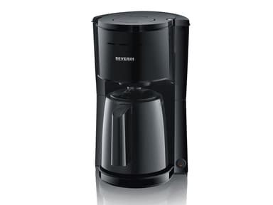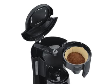 Svart kaffebryggare med filterbehållare som kan svängas ut till sidan för enkel påfyllning av kaffe. Den droppfria termoskannan rymmer ca 8 koppar och håller kaffet varmt längeLäs mer om produkten